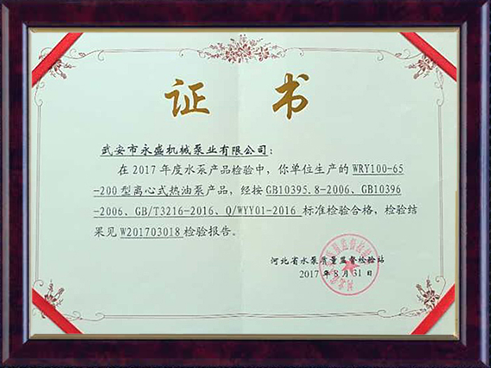 离心式热油泵合格证书